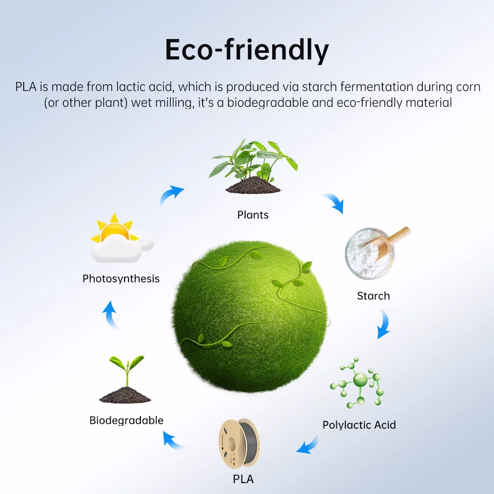 PLA is made from lactic acid, which is produced via starch fermentation during corn(or other plant) wet milling, it’s a biodegradable and eco-friendly material.