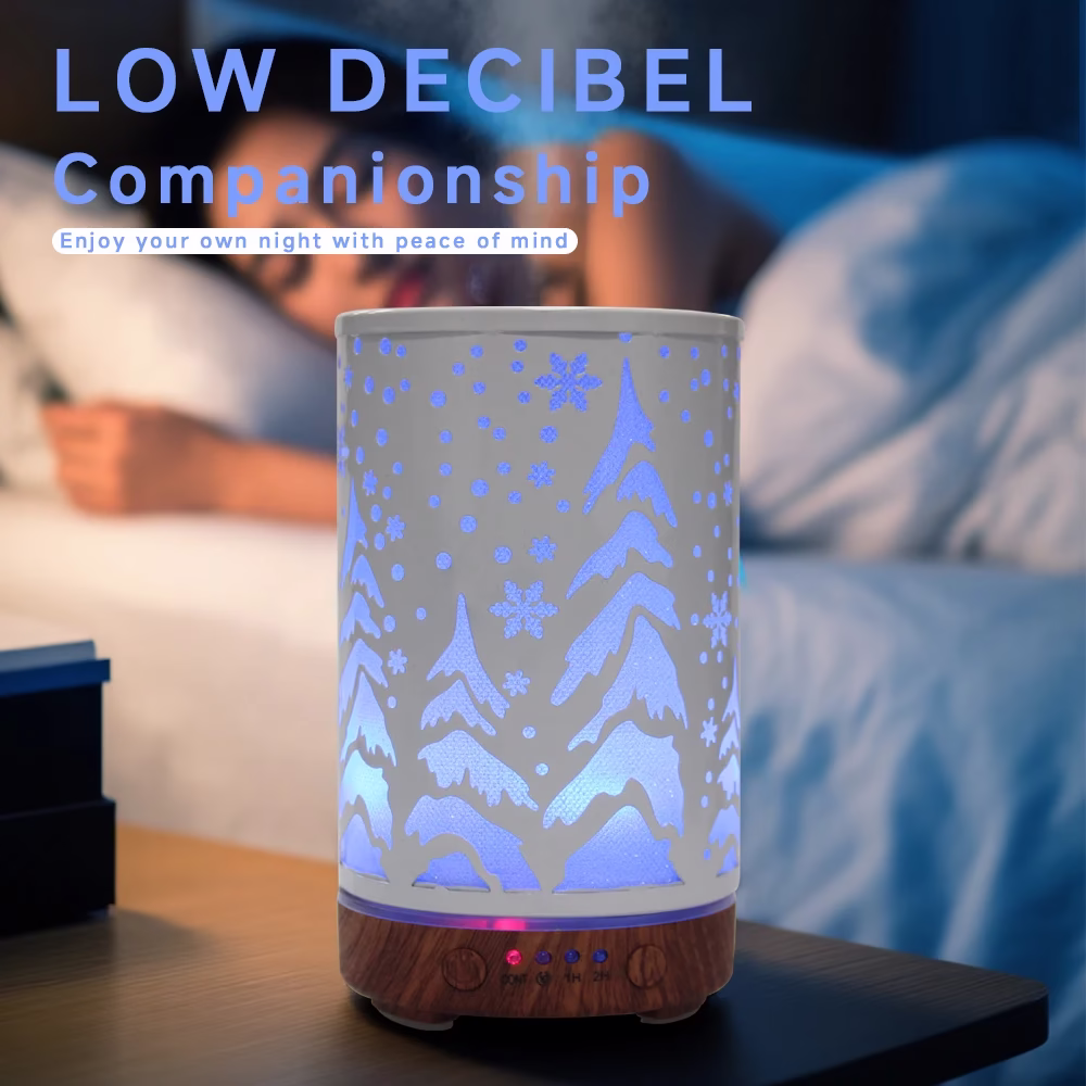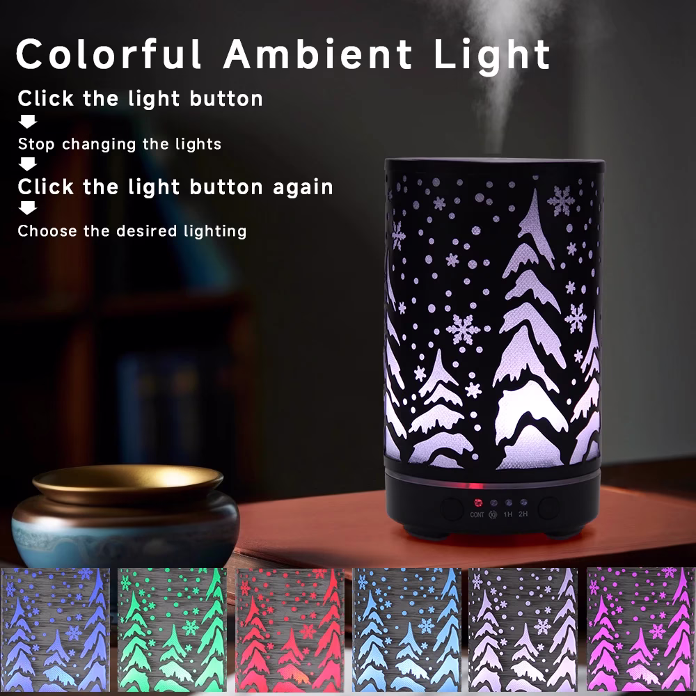 Ultrasonic Air Humidifier 100ml Timing Function Aroma Diffuser Hollowed-out Tree Humidifier Room Scent Diffuser with LED Lights